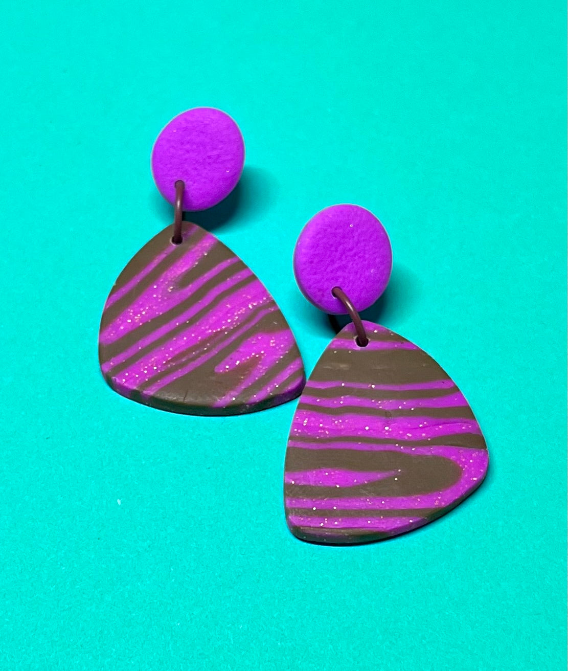 Schöne handgemachte Ohrringe in braun und pink mit etwas Glitzer, sehr leicht, mit Ohrstecker aus Edelstahl