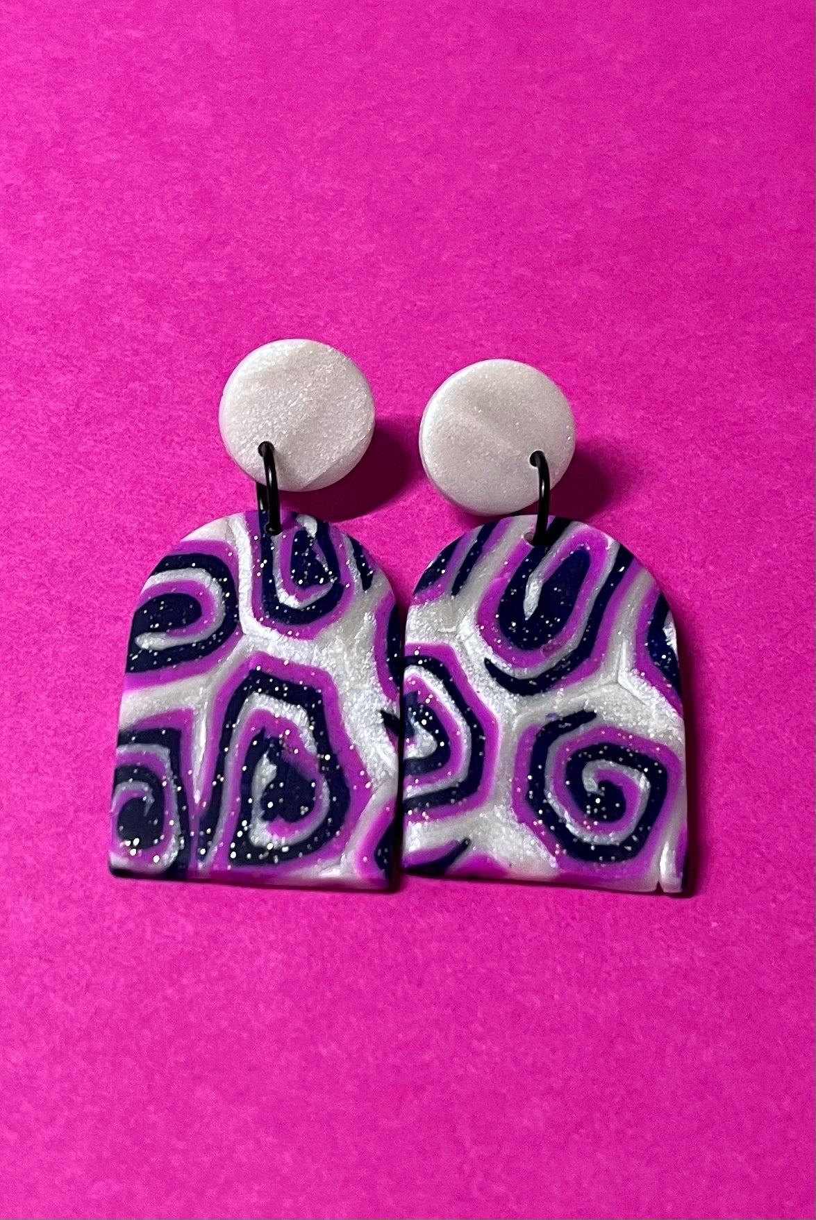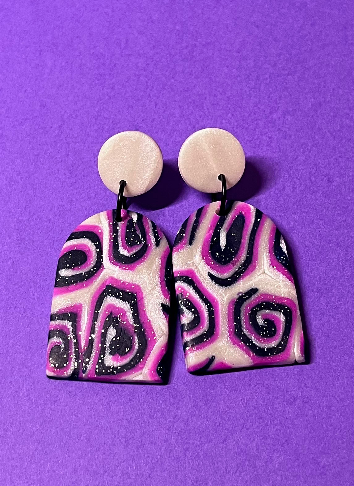 Große, auffällige Ohringe, perlmutt, dunkelglitzernd und pink