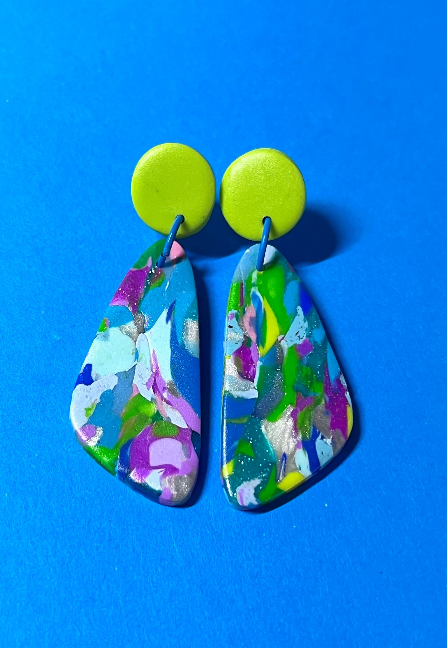 Handgemachte Ohrringe in gelb und bunt genmeustert aus Polymer Clay!