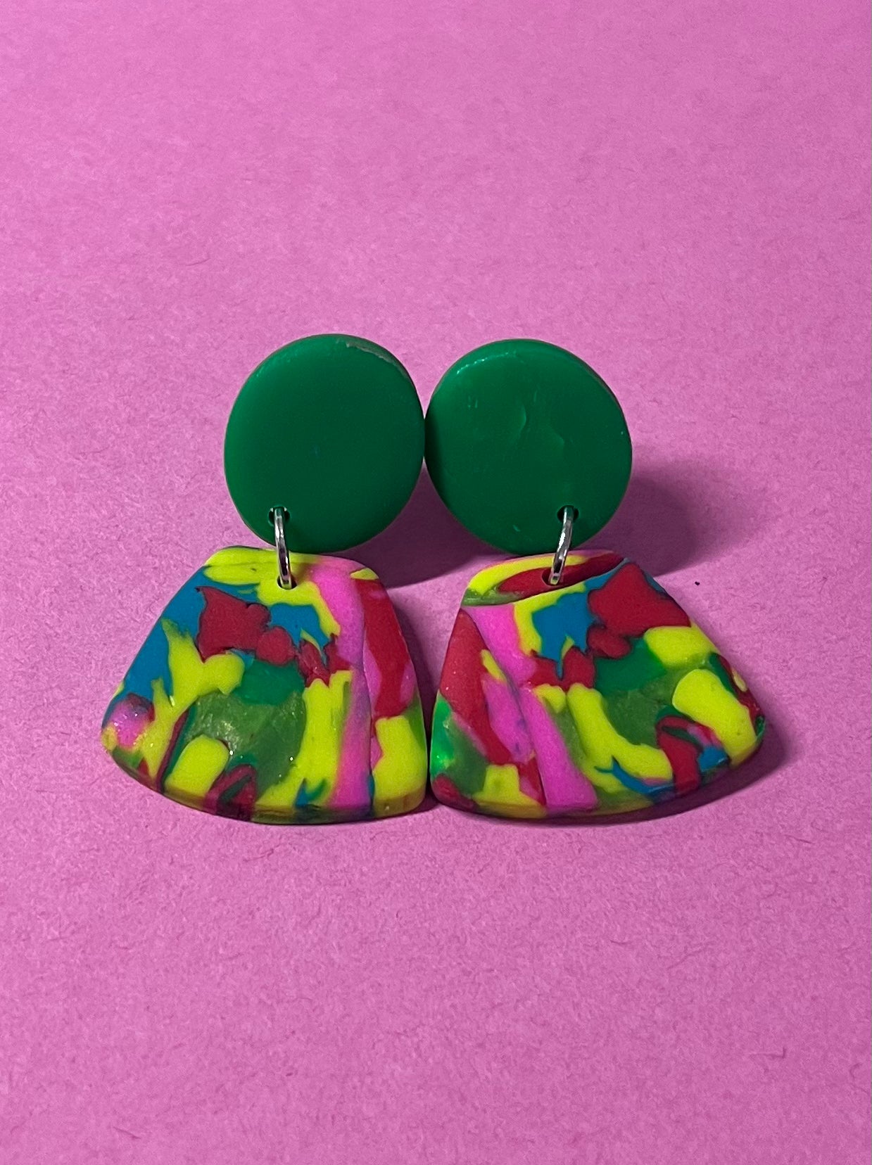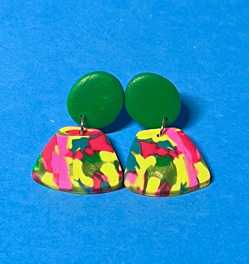 Kleine bunte auffällige Ohrringe, handgemacht, aus Polymer Clay