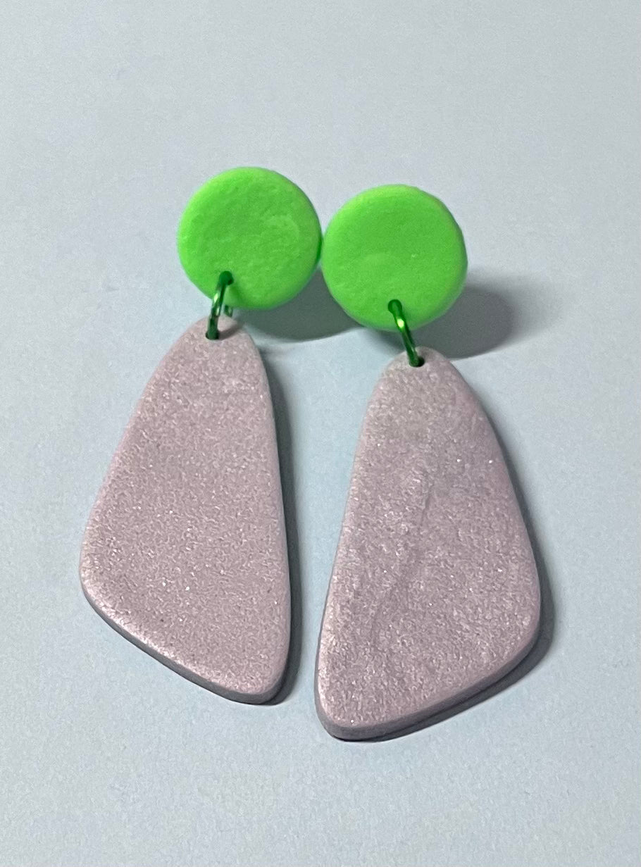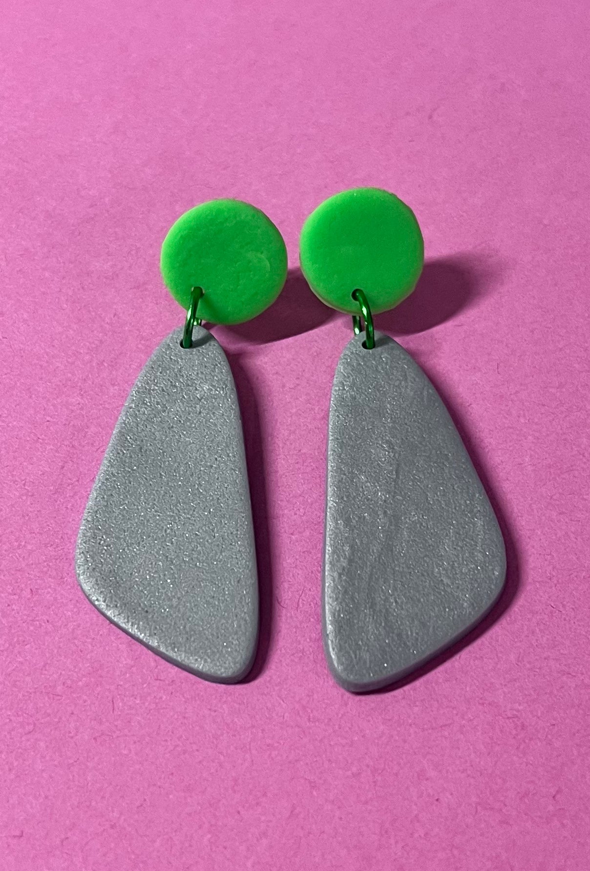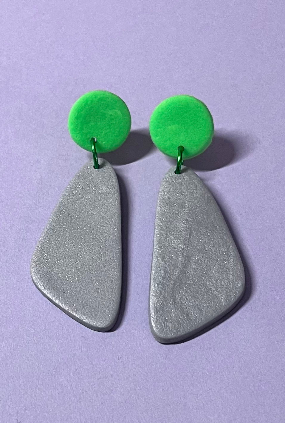 Ohrringe handgemacht bunt in grau-schimmernd und hellgrün